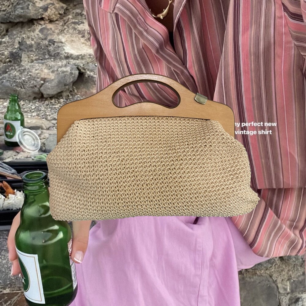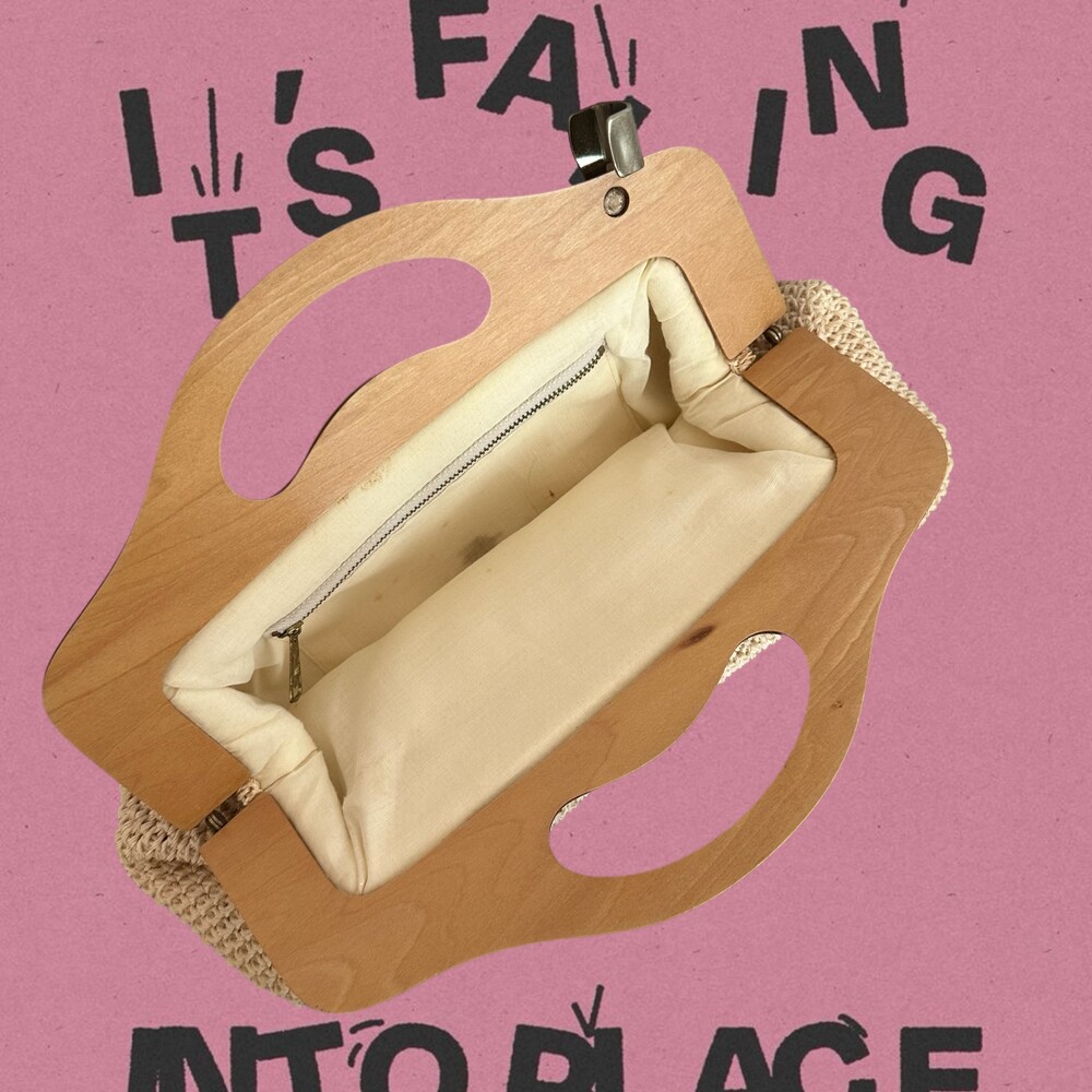 Vintage 70's Handmade Crochet Bag (Ivory)