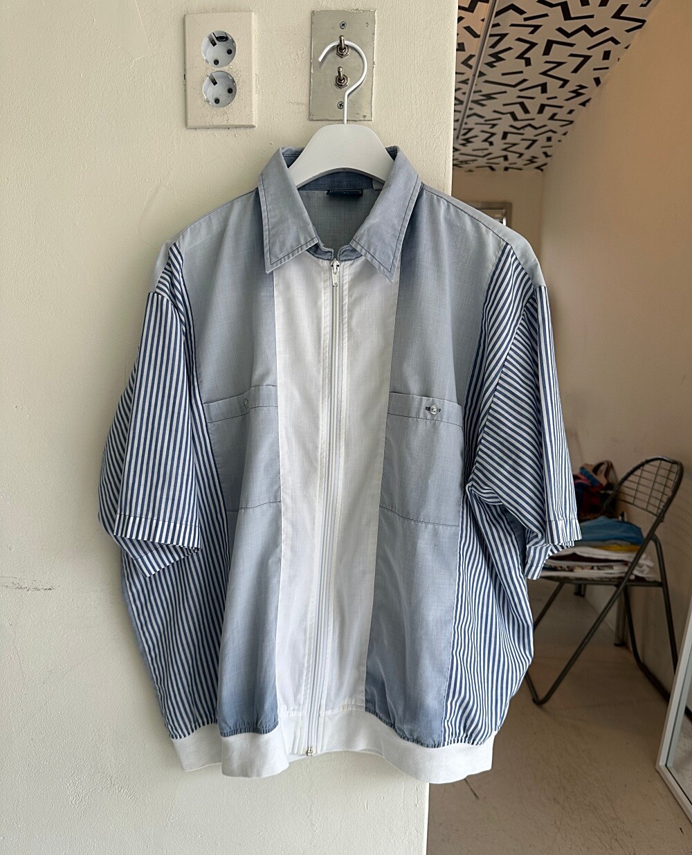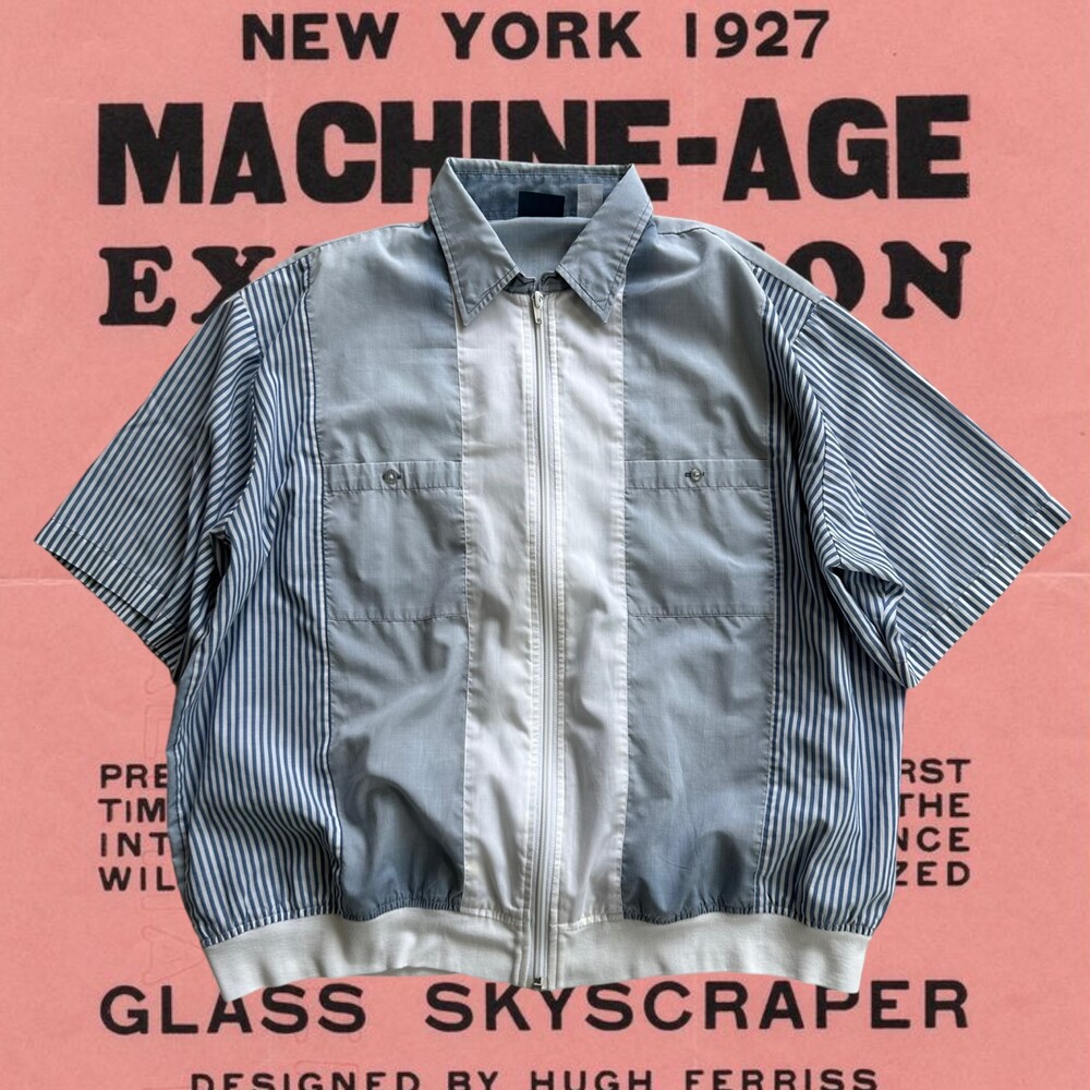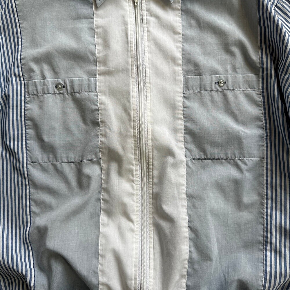 Vintage 80's Cuban Zip Up Shirt (Blue)