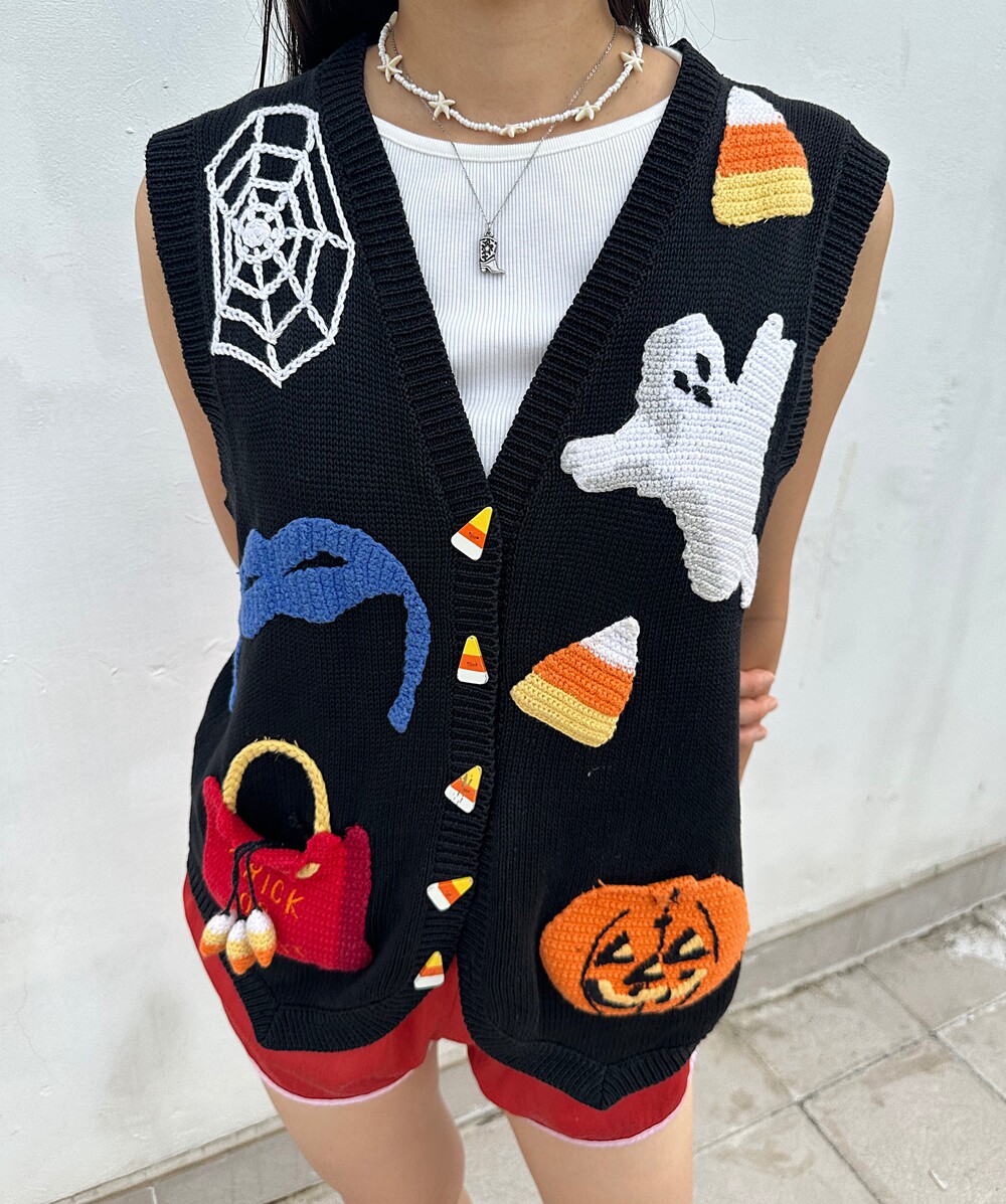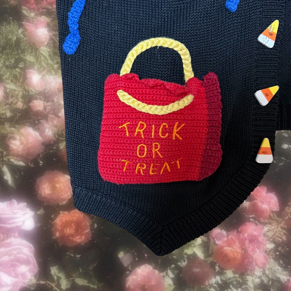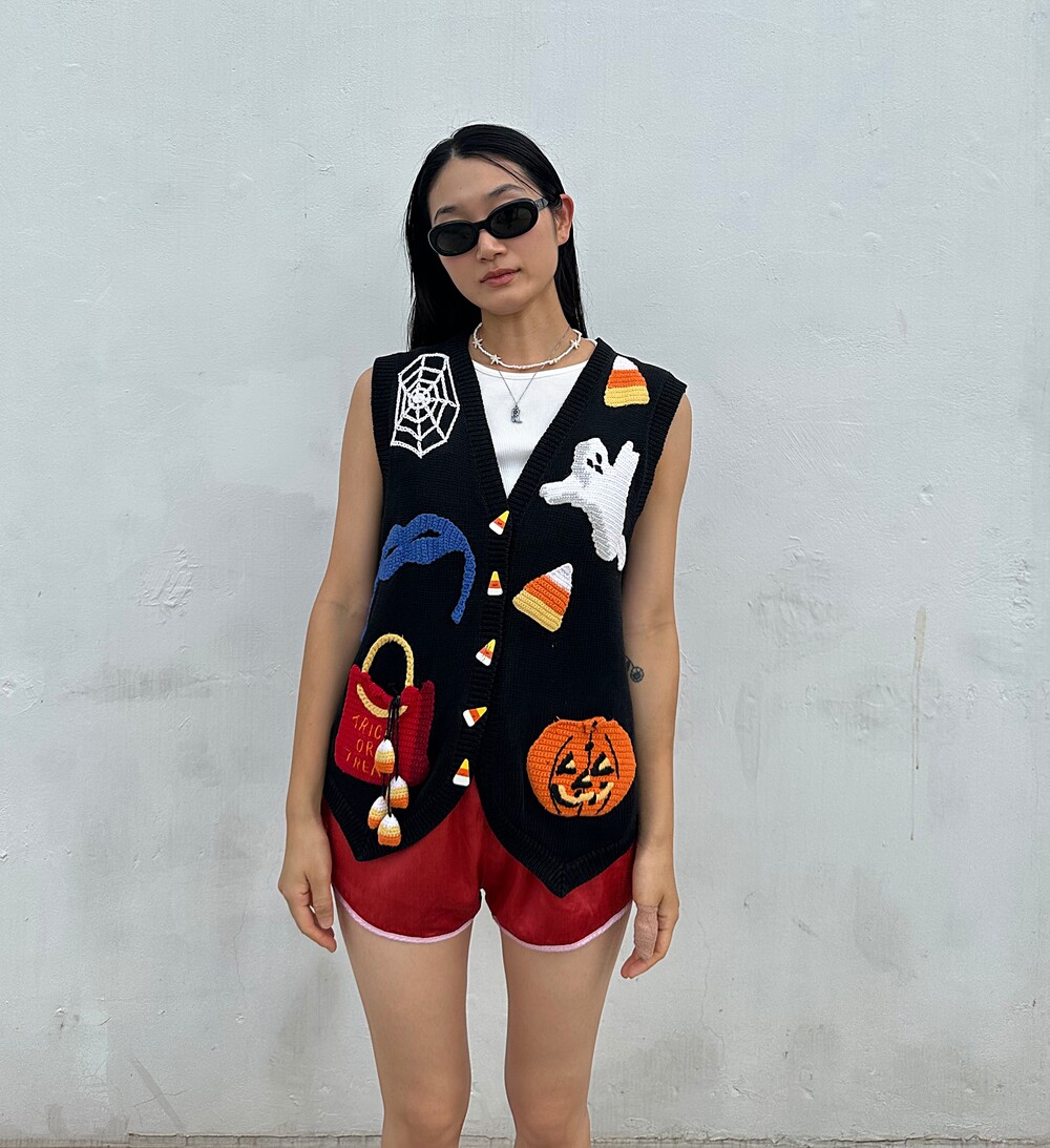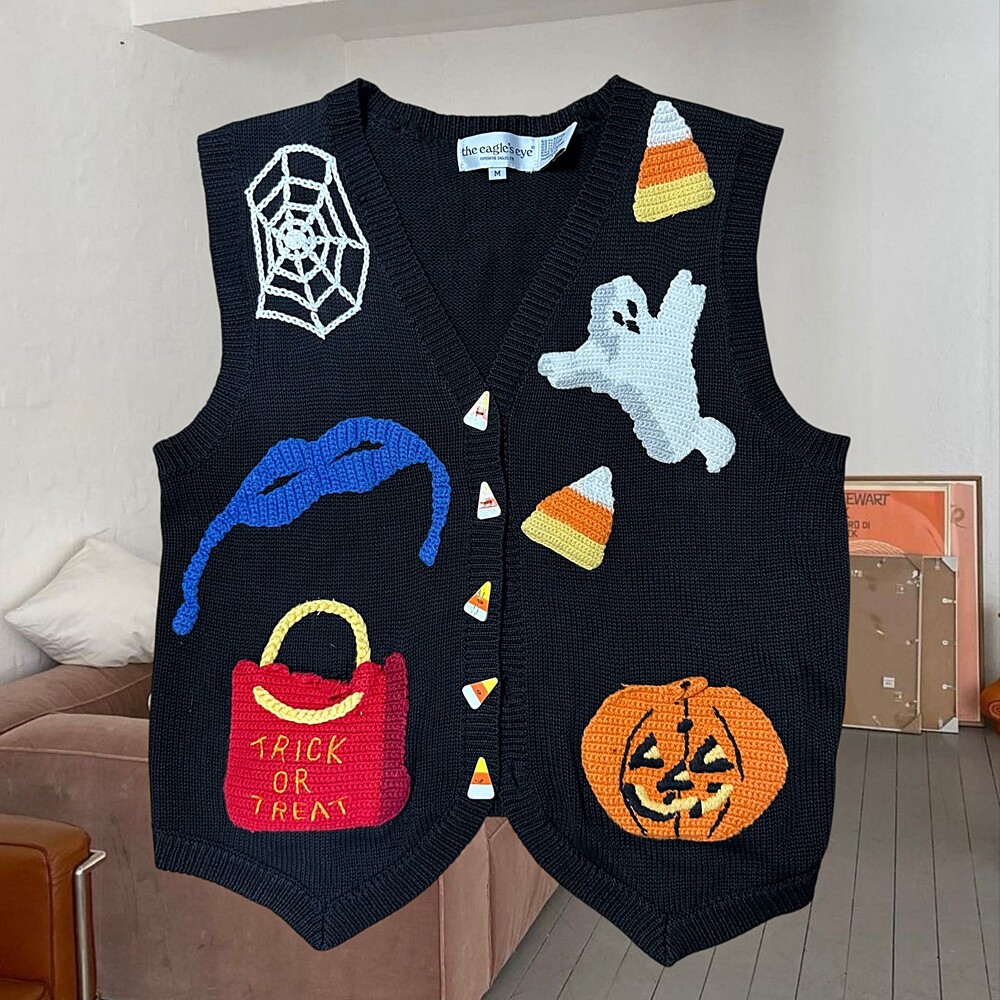 Vintage 90's Halloween Embroidered Vest (Black)