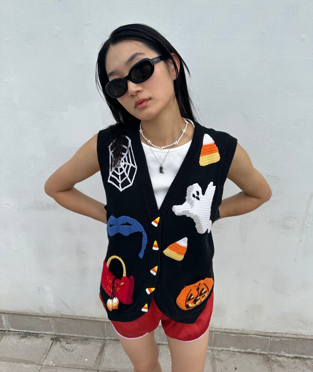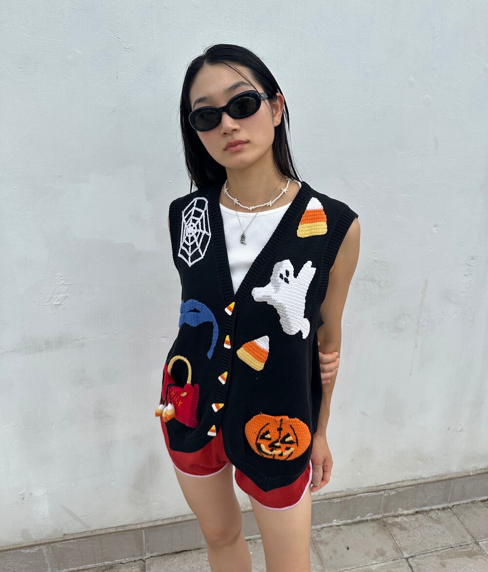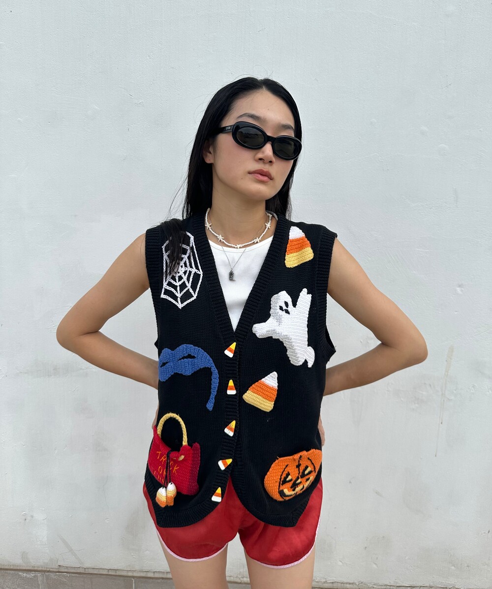 Vintage 90's Halloween Embroidered Vest (Black)