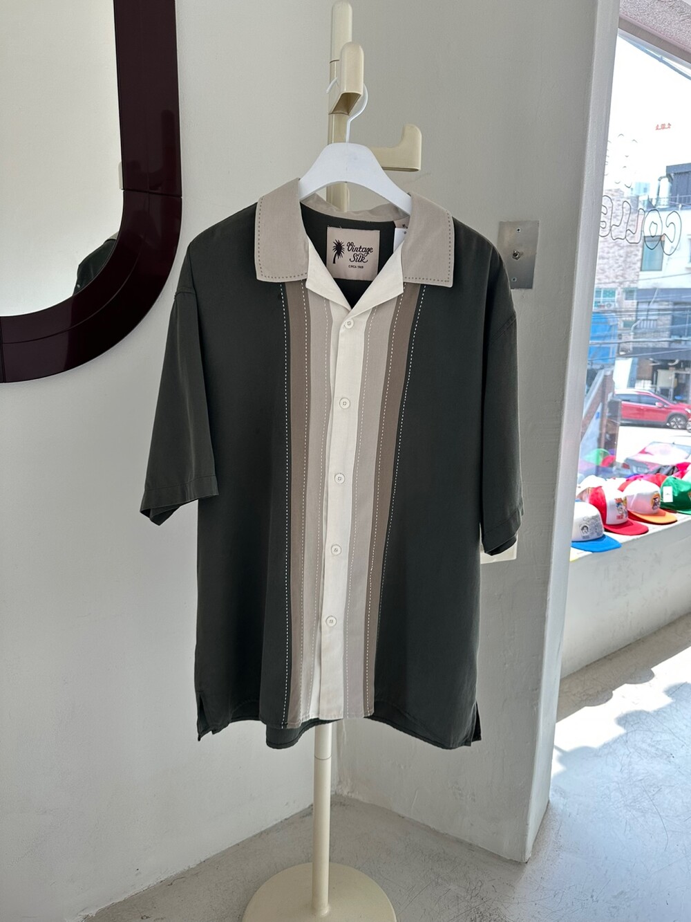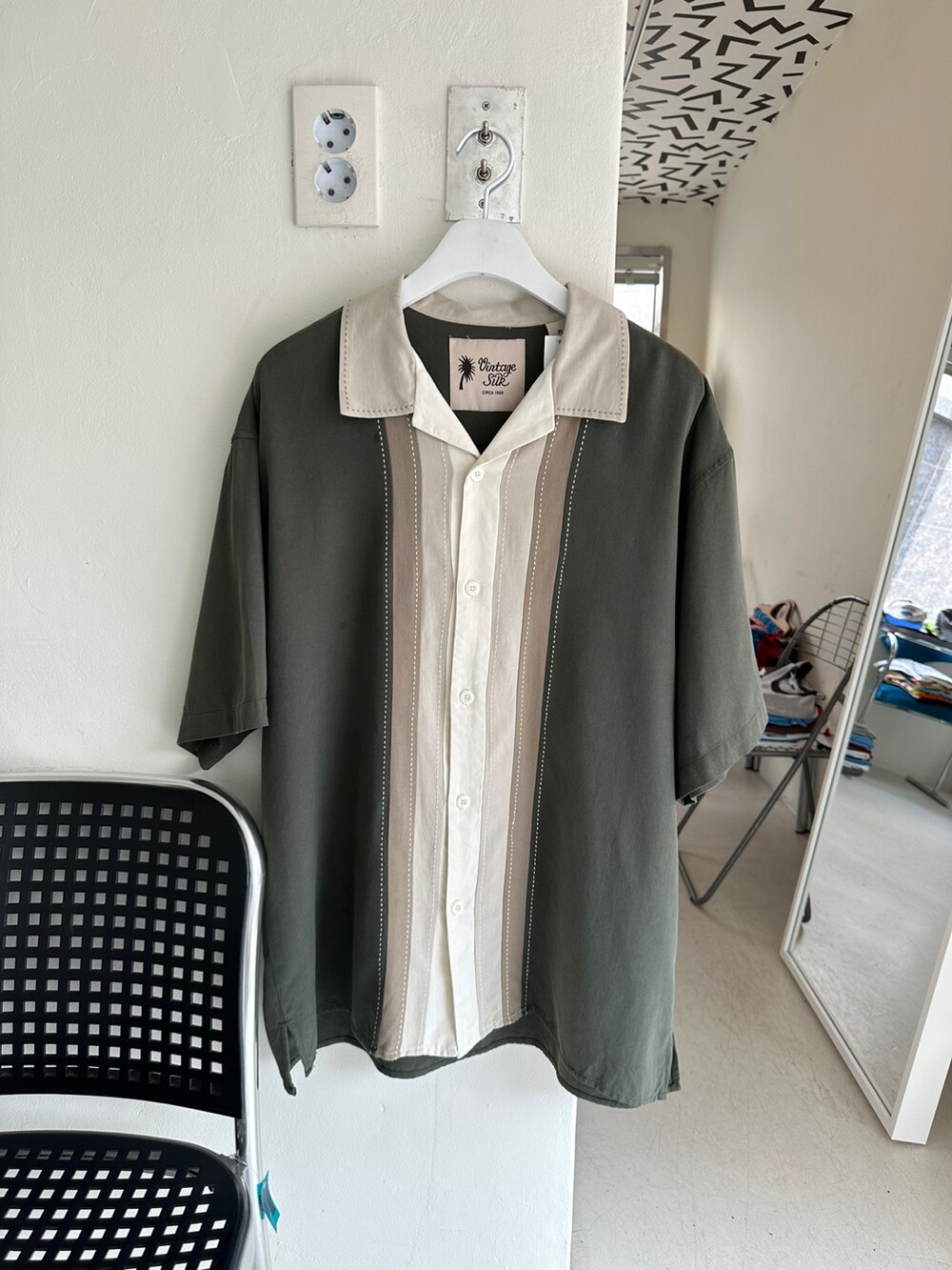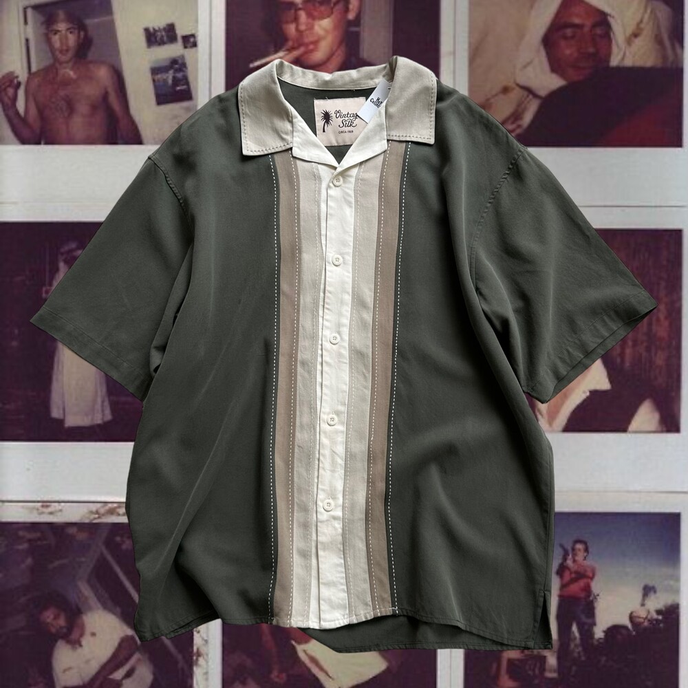 Vintage 80's Open Collar Shirt (Khaki)