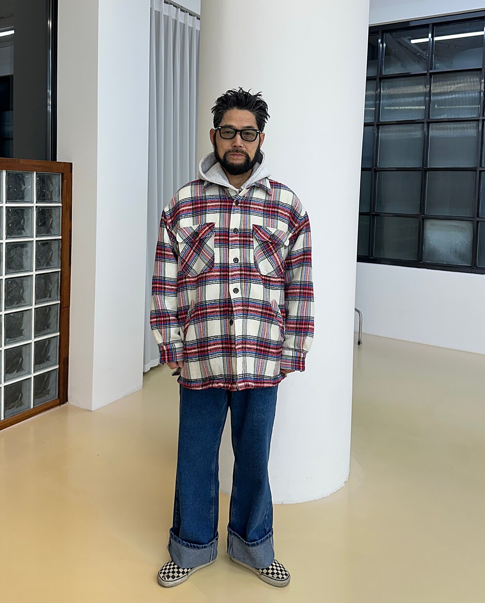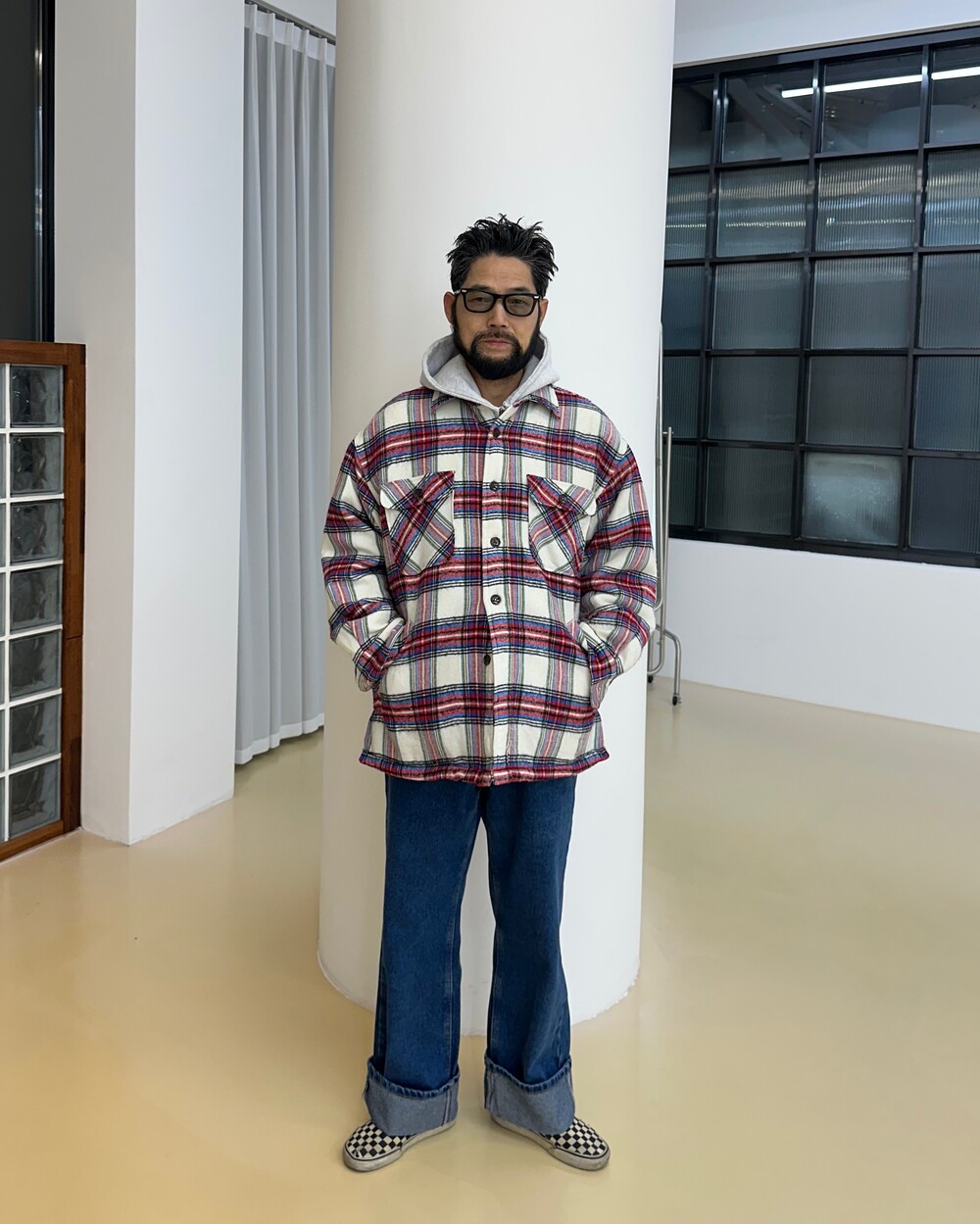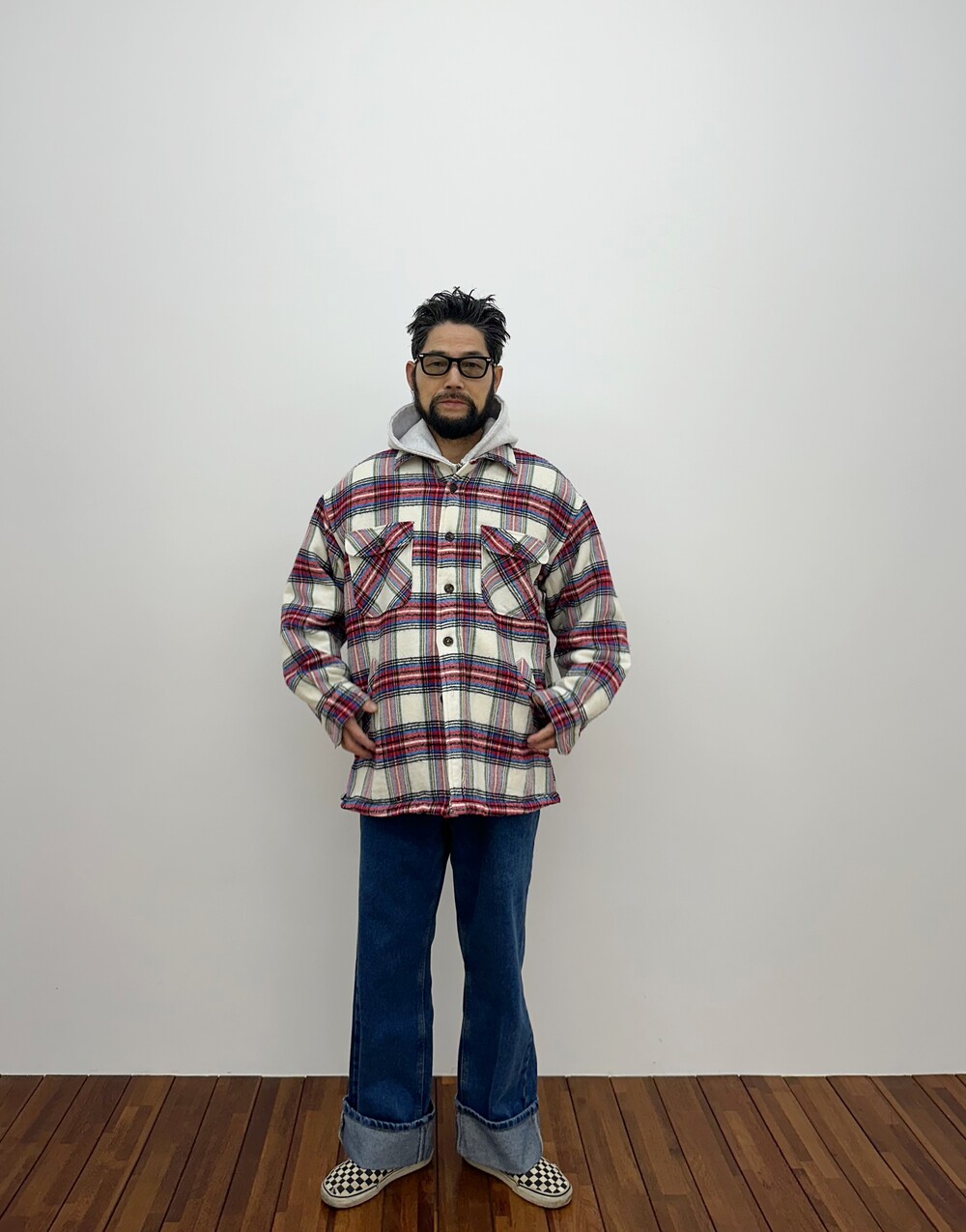 Vintage 90's Checkered Shirt Jacket (Red)