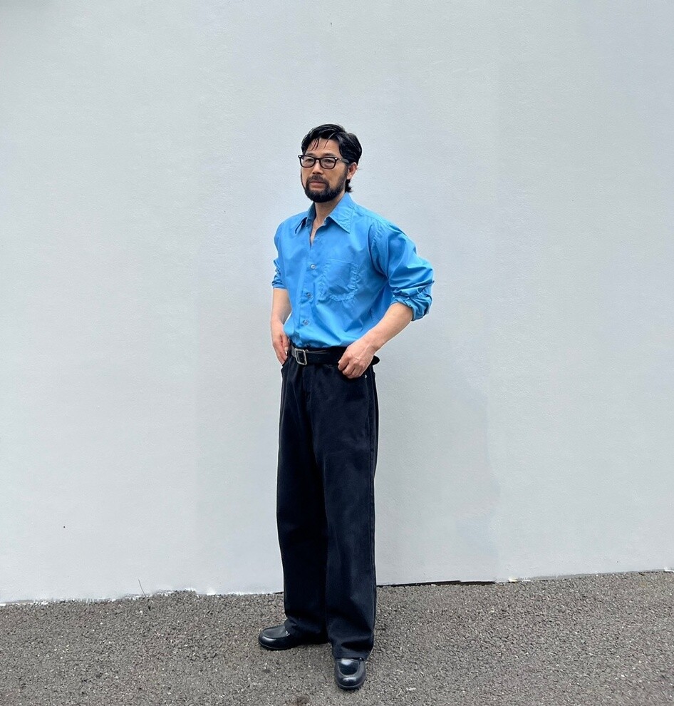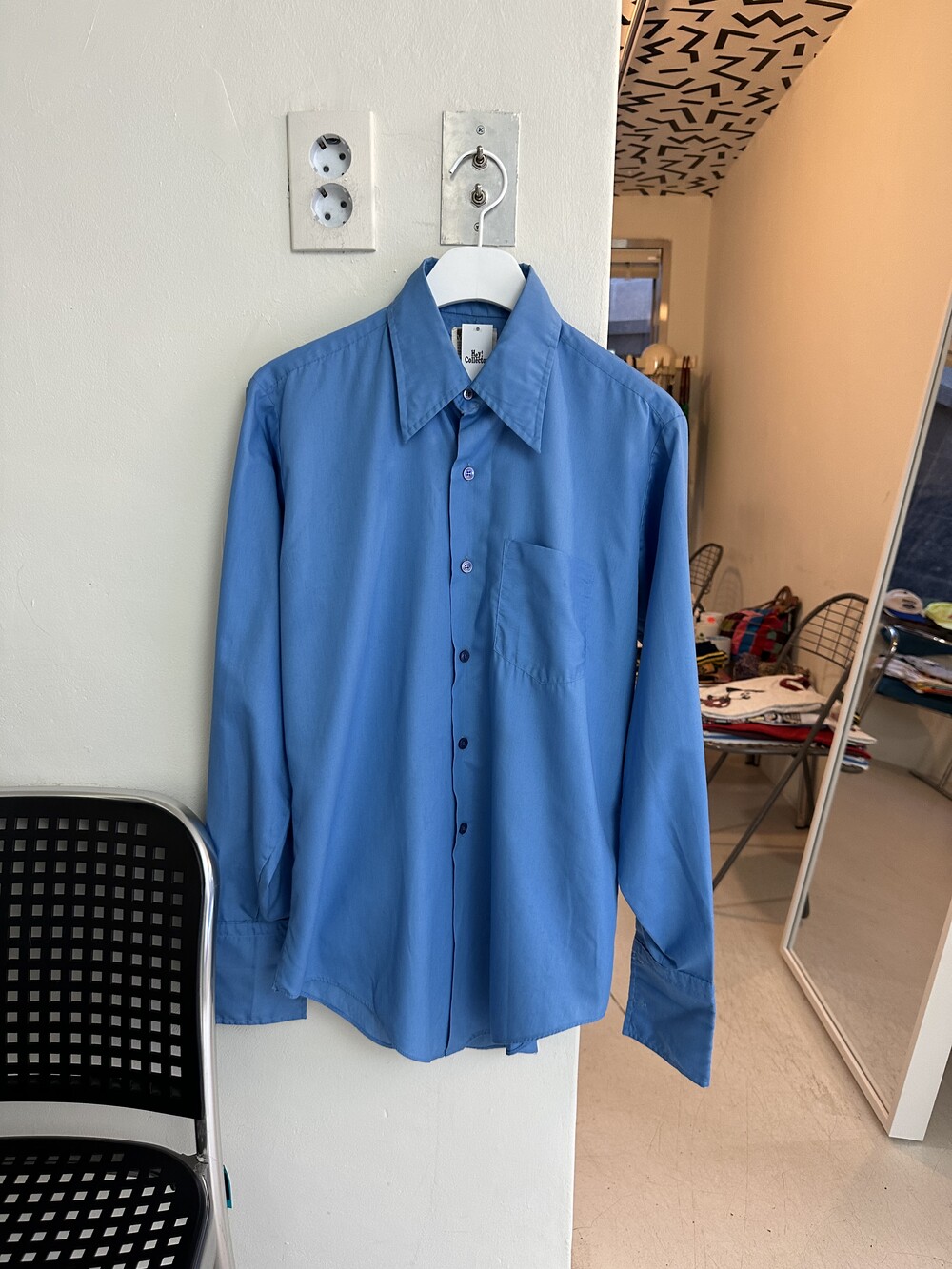 Vintage 70's Big Collar Shirt (Blue)