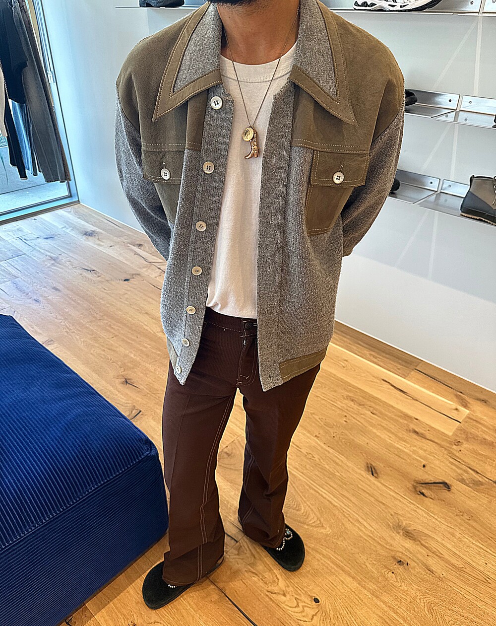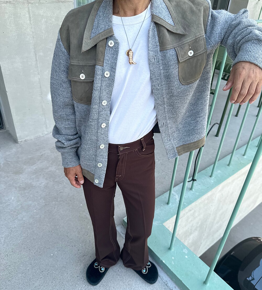 - 빈티지 스웨이드 가죽 니트