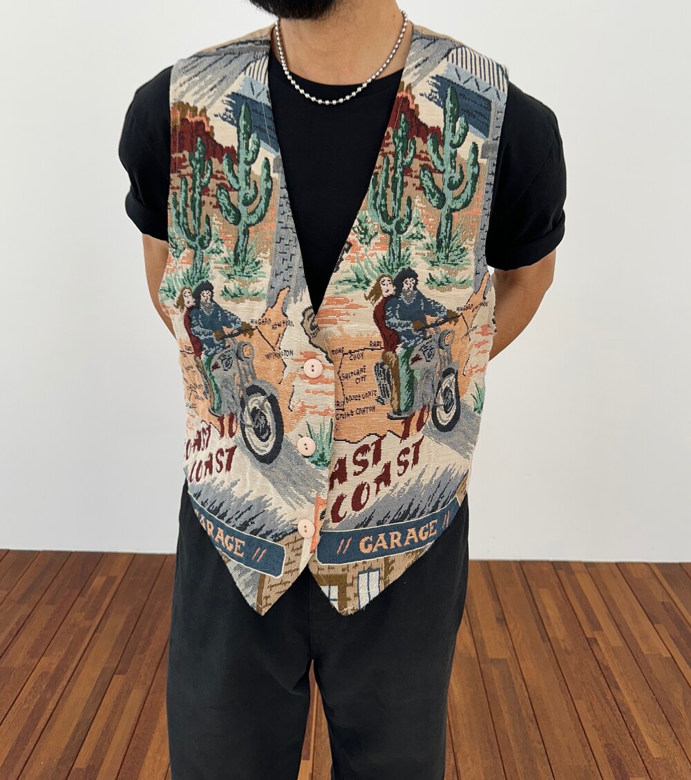 Vintage 80's Motorcycle Tapestry Vest (Mix)