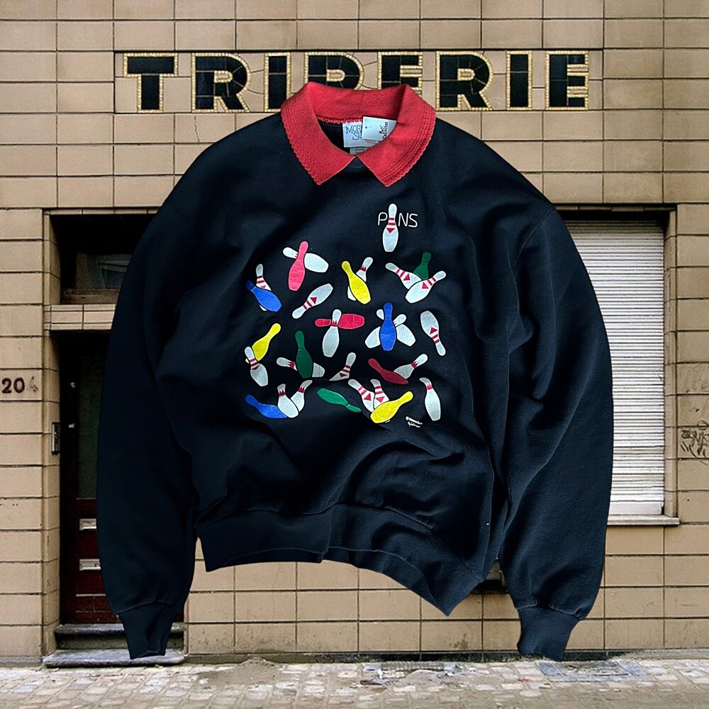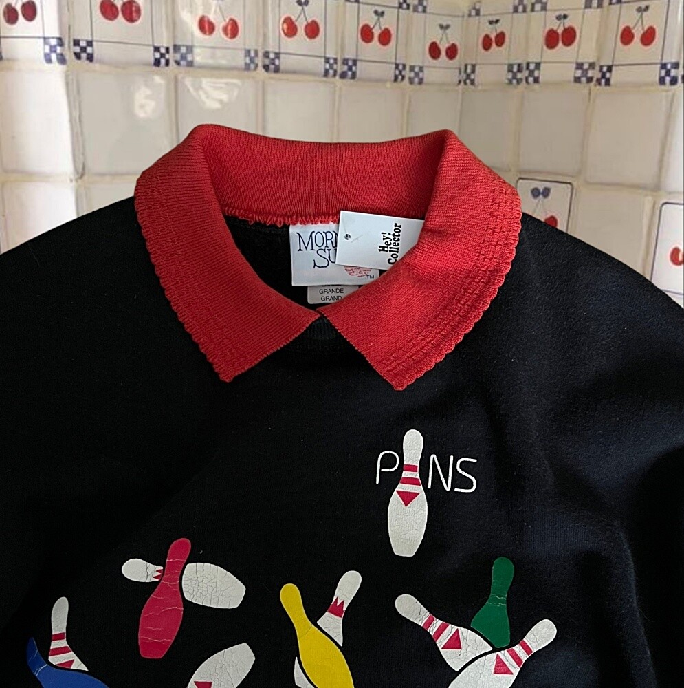 Vintage 90's Bowling Collar Sweatshirt (Black)