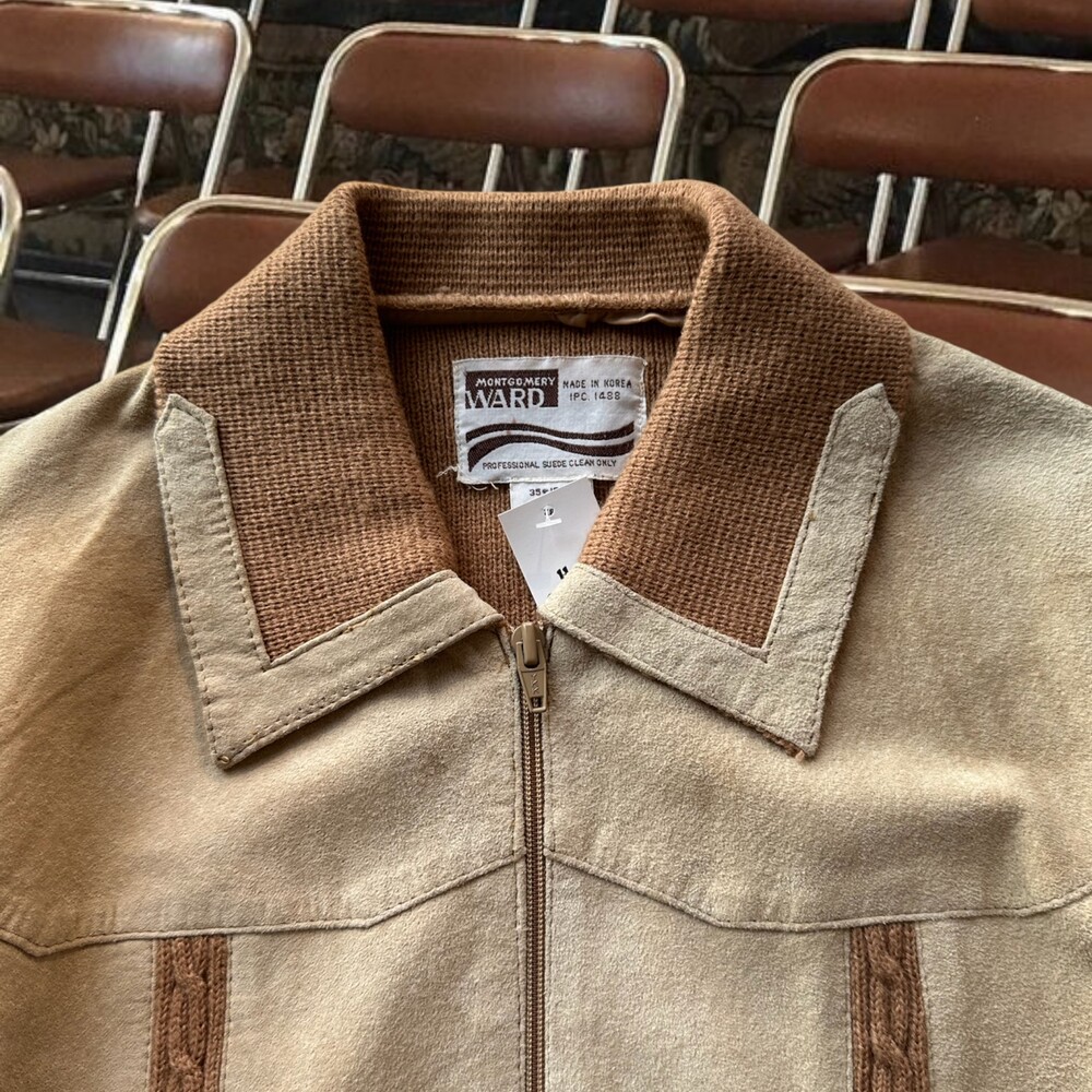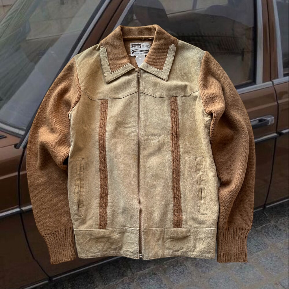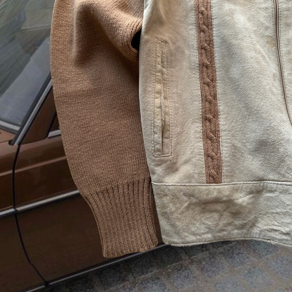 Vintage 80's Disco Suede Knit Jacket (Beige)