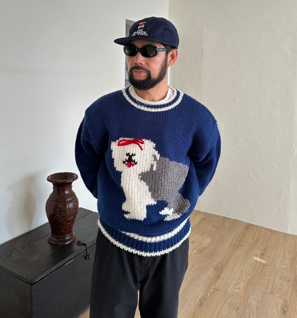 Vintage 90s Puppy Knit (Navy)