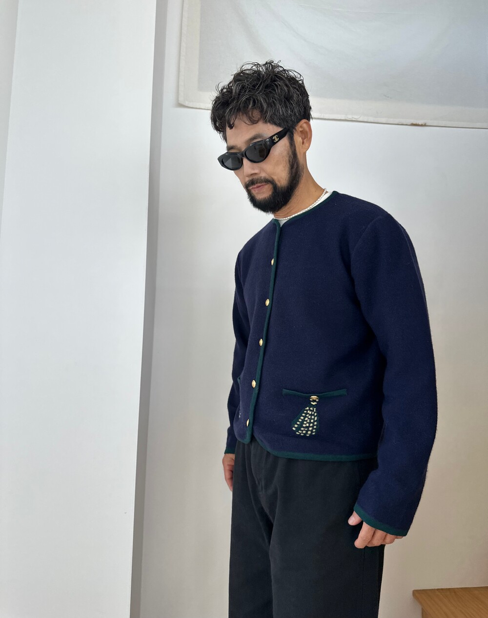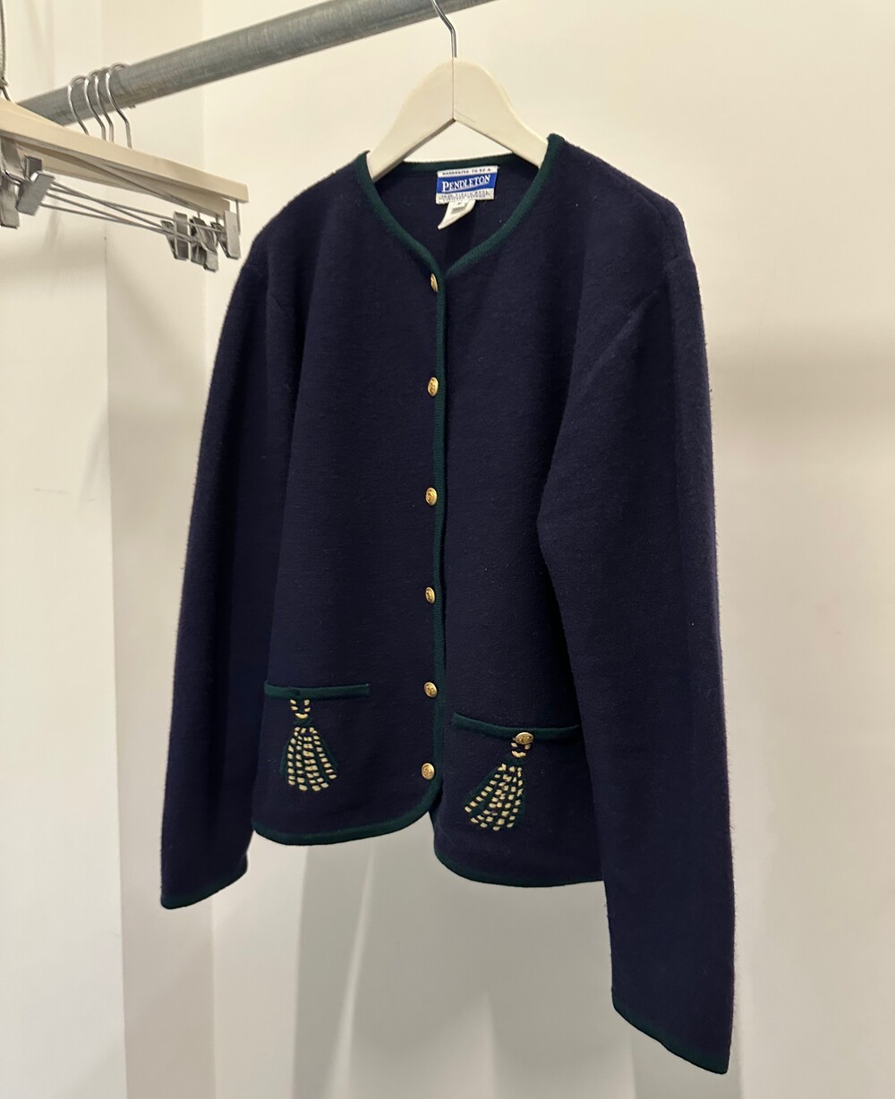 Vintage 90's Merino Wool Cardigan (Navy)