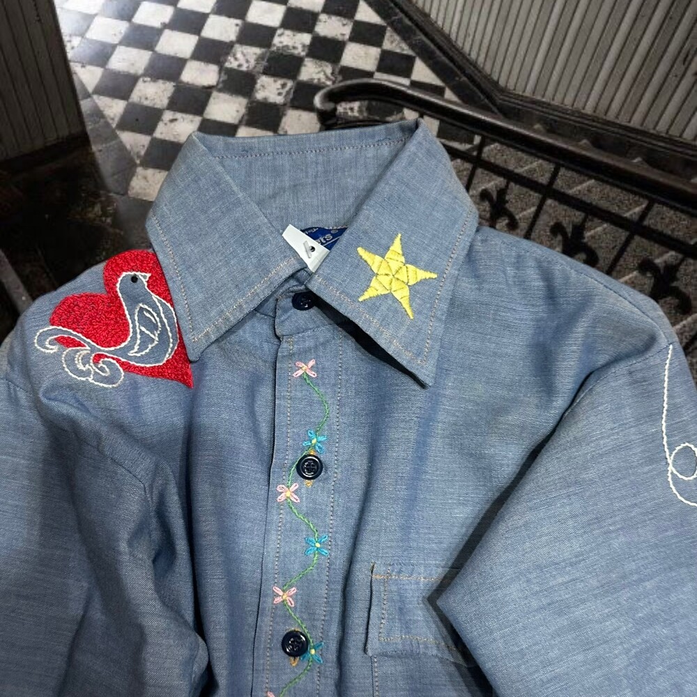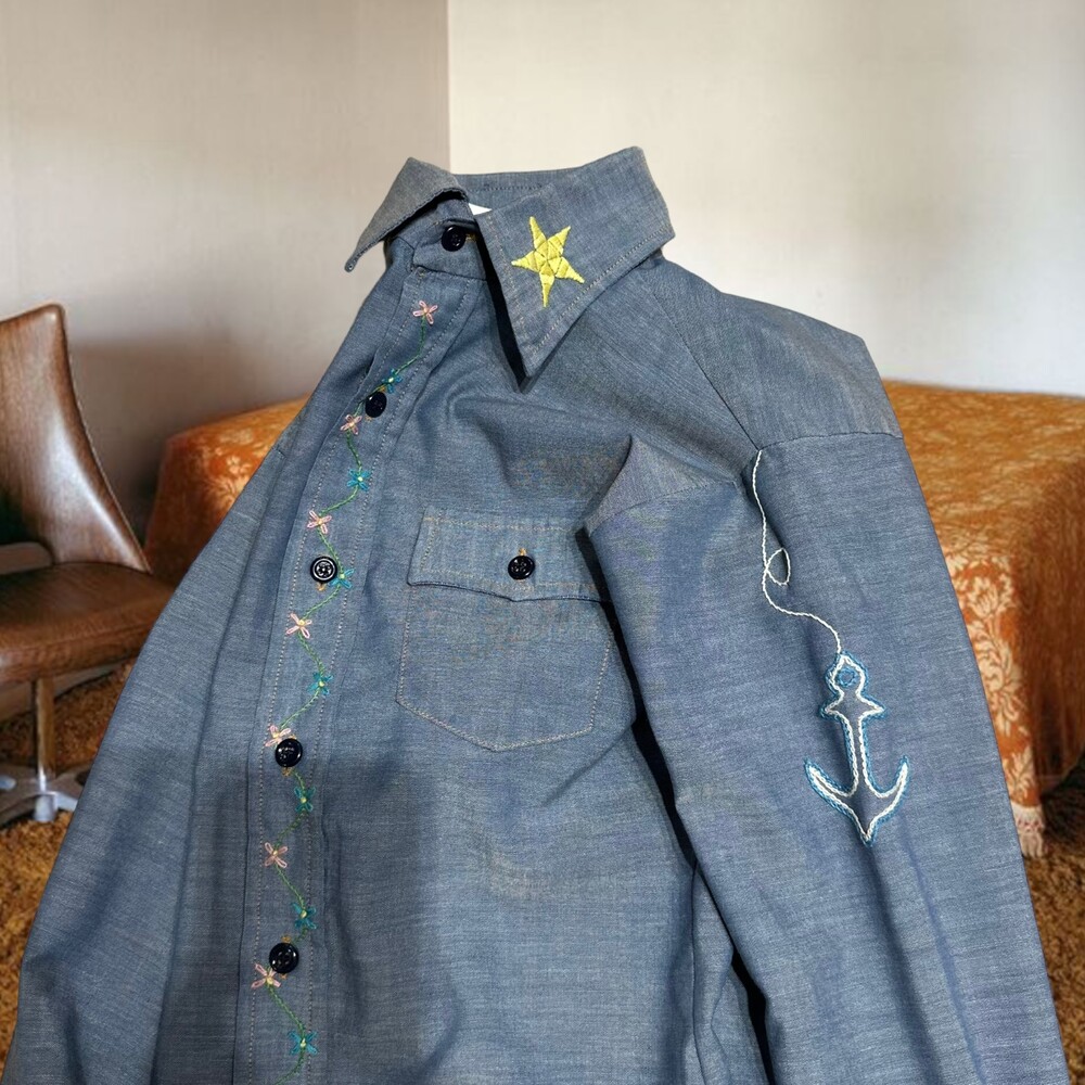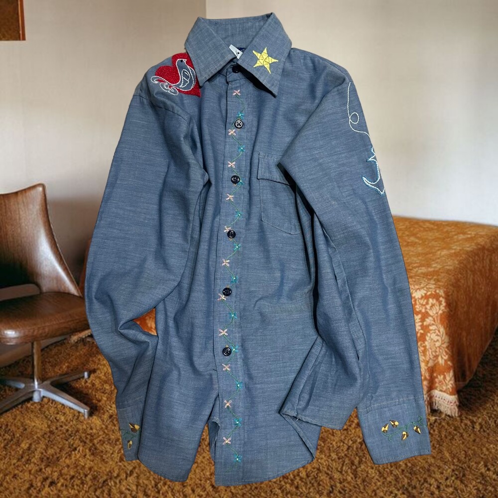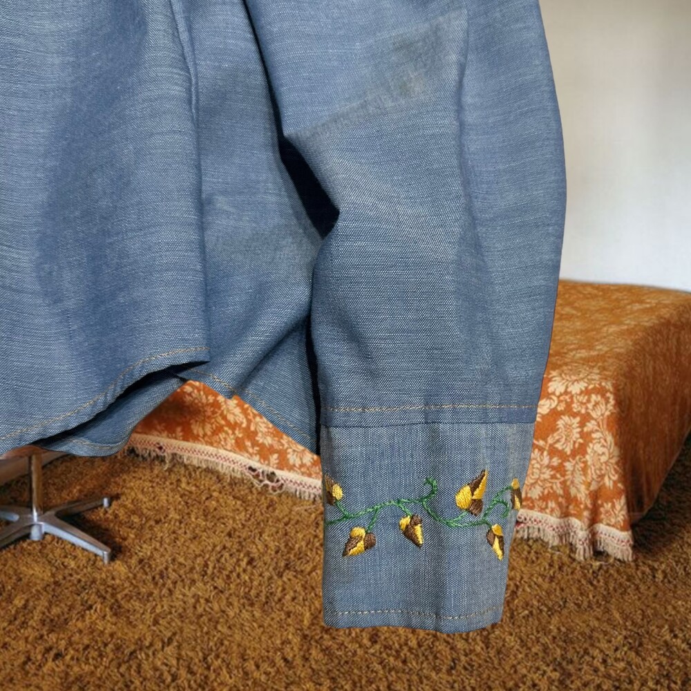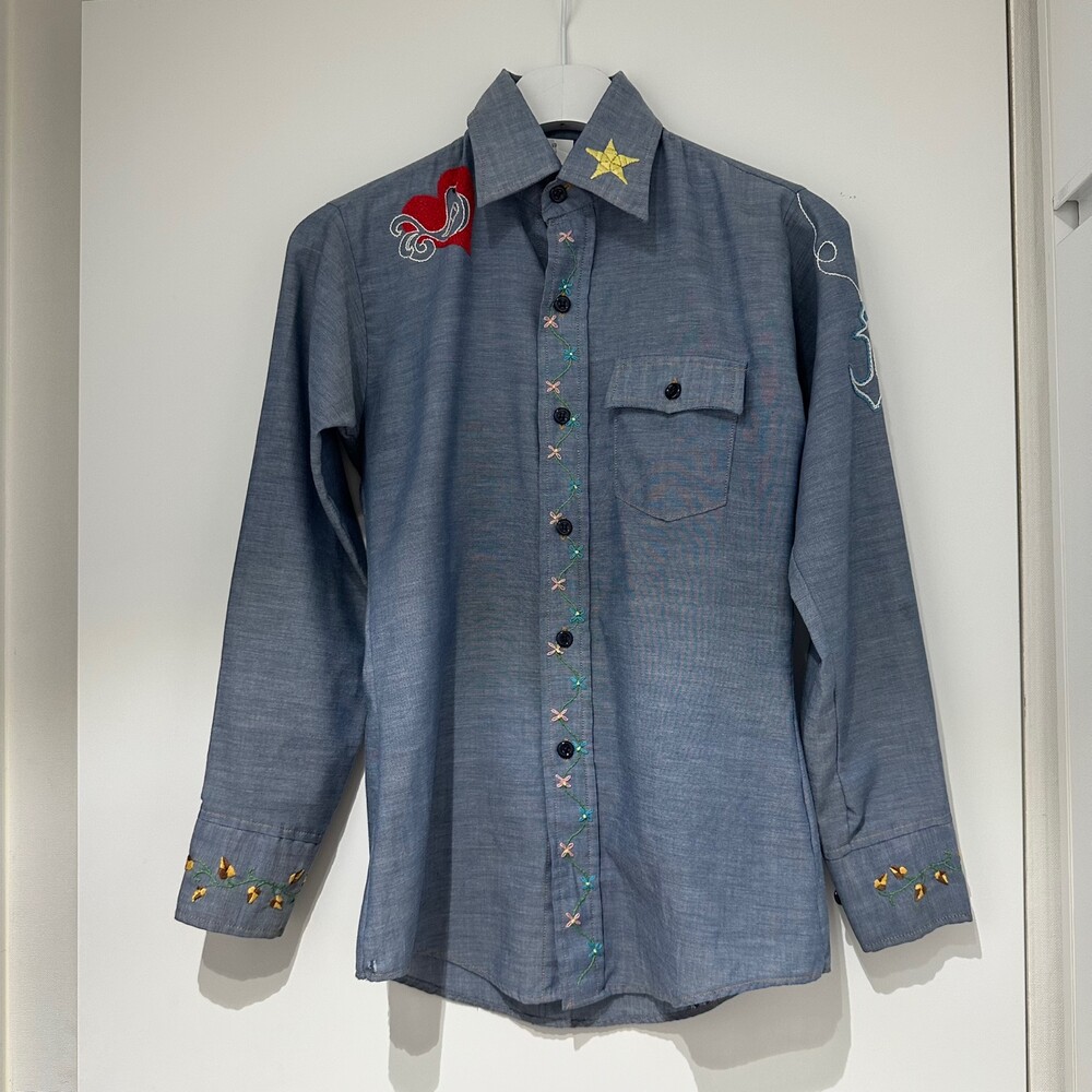 Vintage 70's Chambray Embroidery Shirt