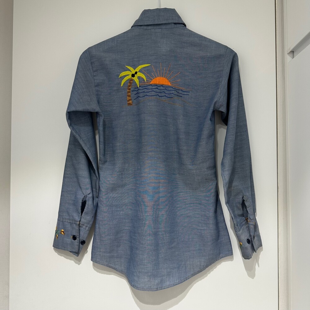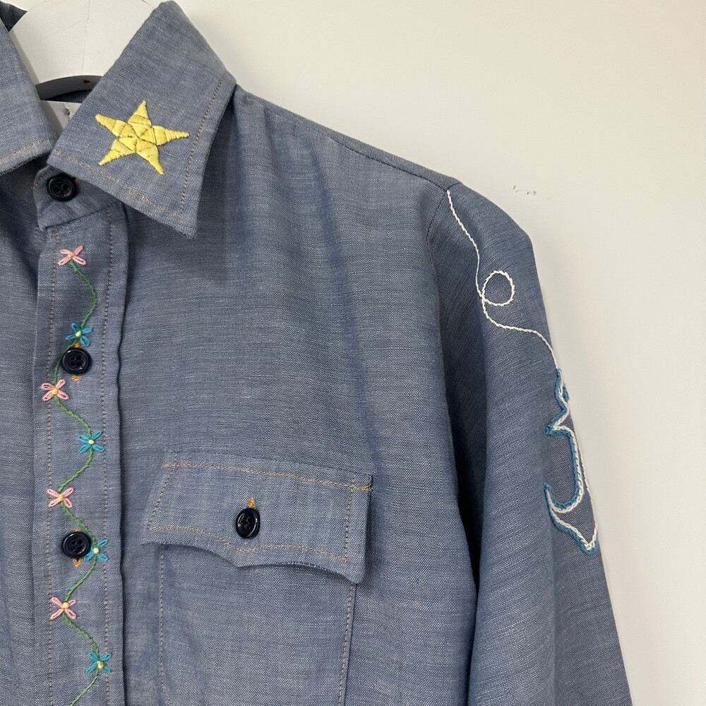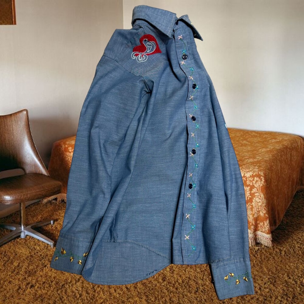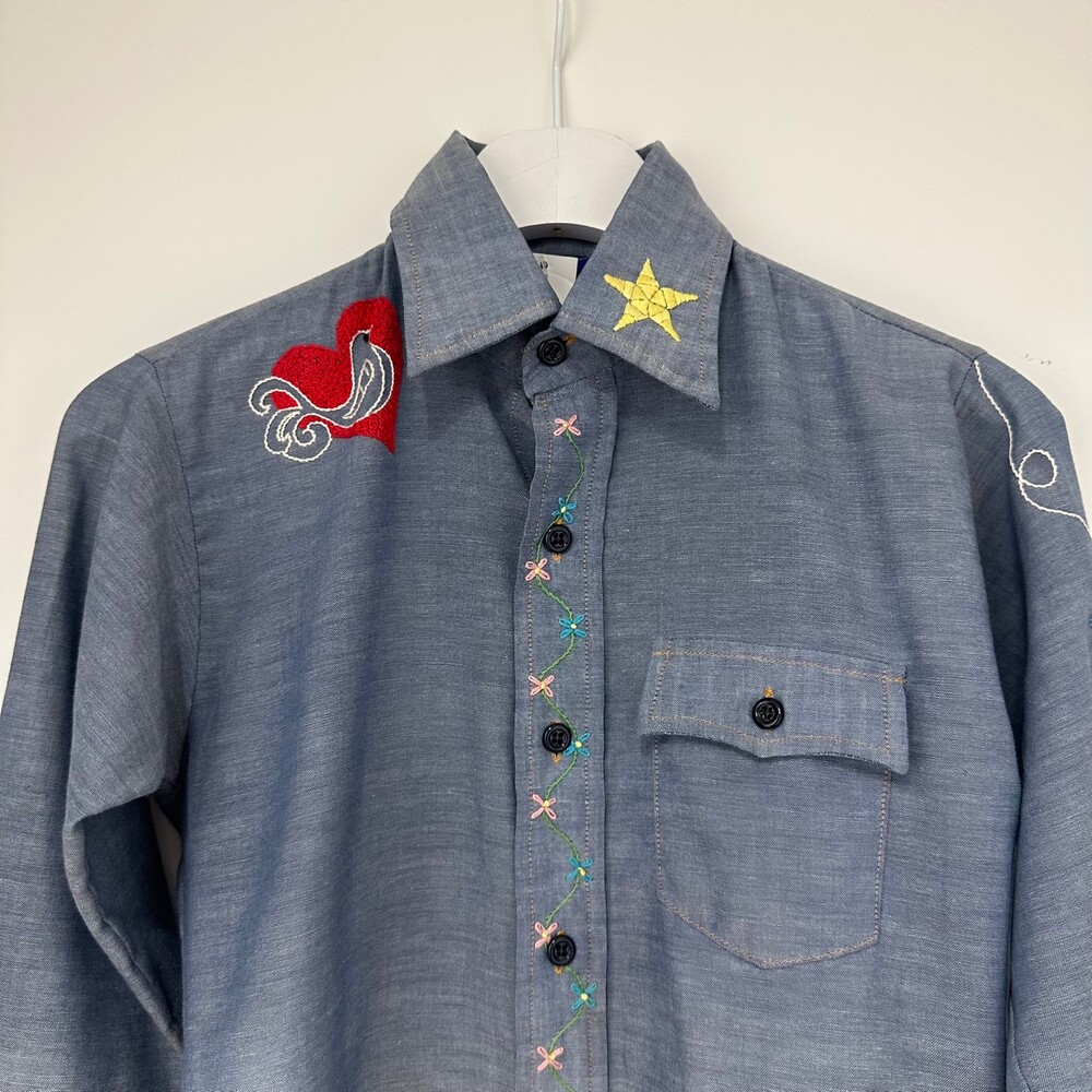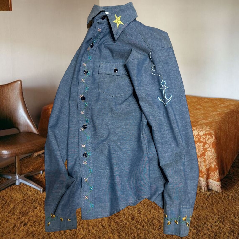 Vintage 70's Chambray Embroidery Shirt